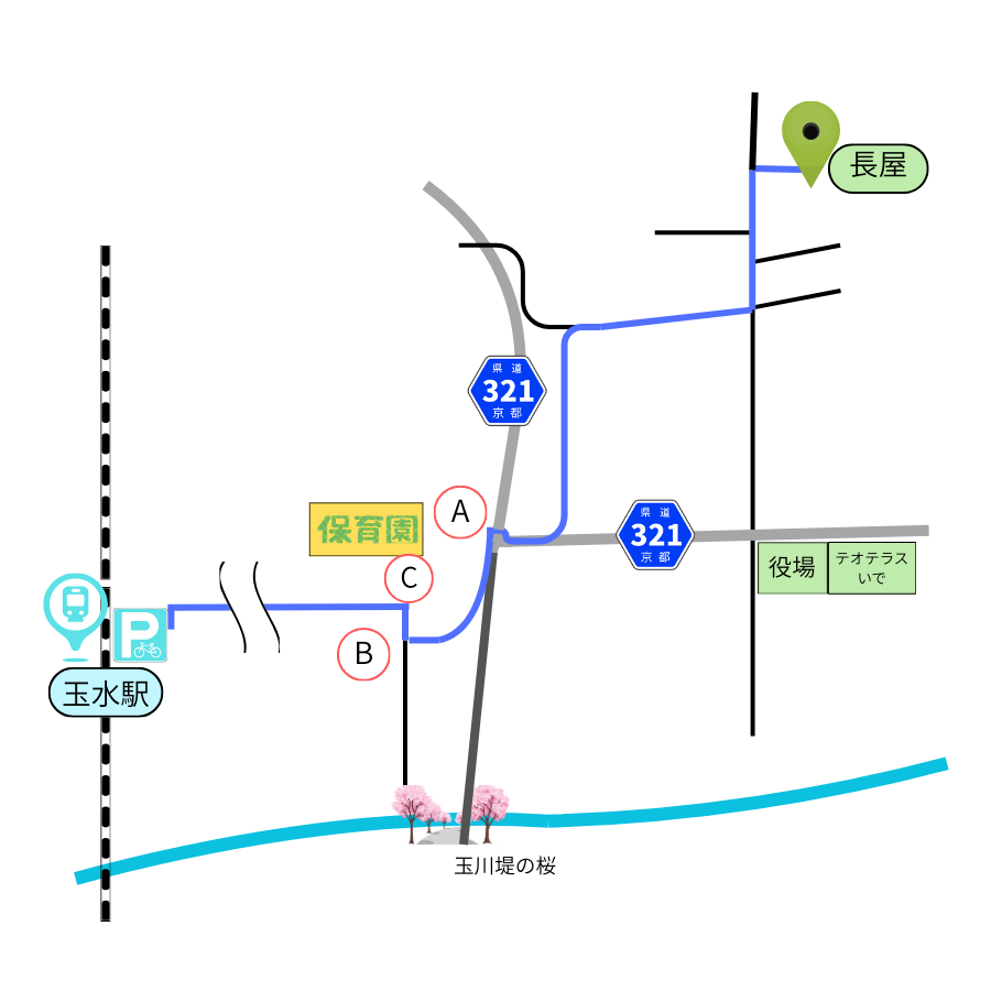 - RVパーク長屋から玉水駅へ(下り 15分)