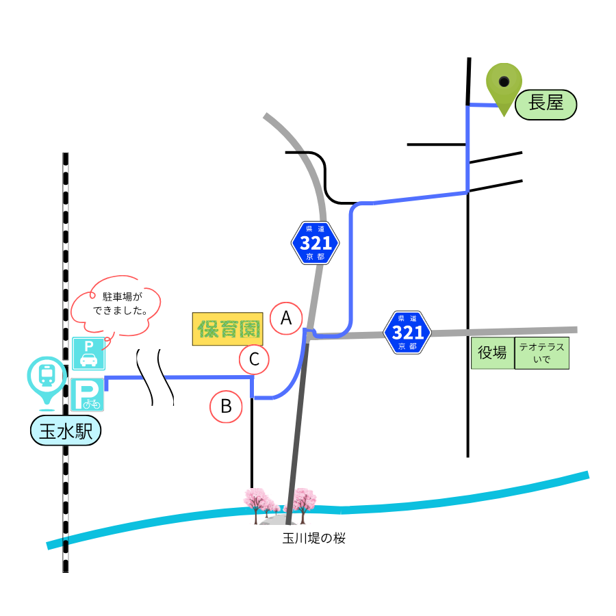 玉水駅へ徒歩案内 (駐車場ができました。R7.3/20)