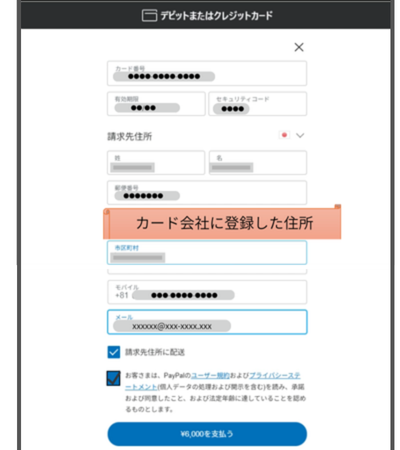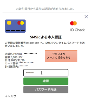 - 認証コードがカード会社の登録された携帯番号のSMS