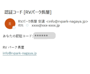 - RVパーク長屋から認証コードを指定したメールが届きます。