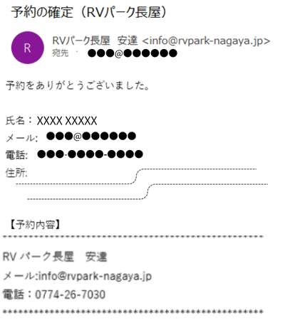 - info@rvpark-nagaya.jp へ至急連絡下さい。